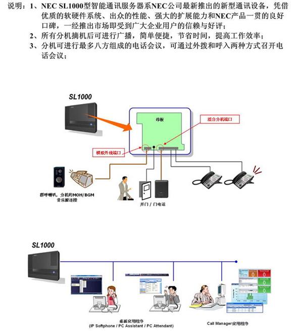 SL1000最低配置為4條外線和8個分機,最高可以升級到128個分機(230個端口)。