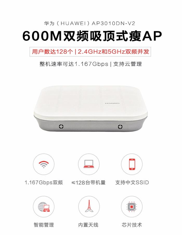 華為(HUAWEI) AP3010DN-V2 600M雙頻吸頂式企業(yè)級無線AP接入點
