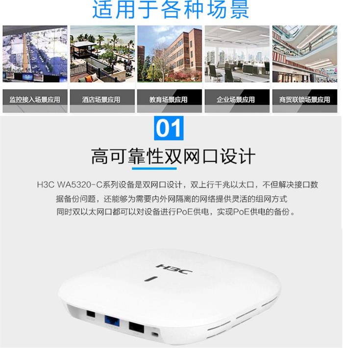 華三(H3C)WA5320-C-EI-FIT 室內吸頂式雙頻千兆企業(yè)級wifi無線AP接入點 瘦模式