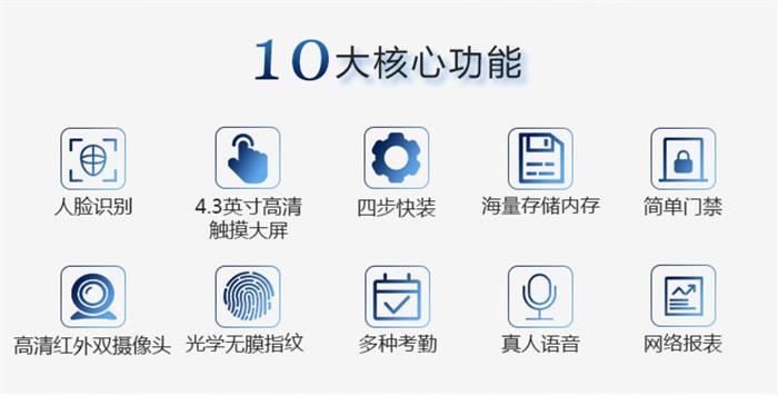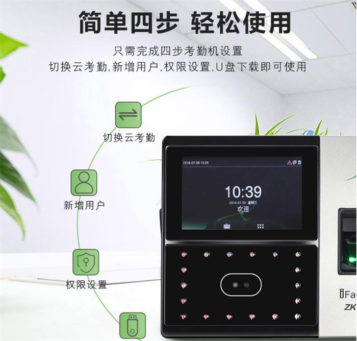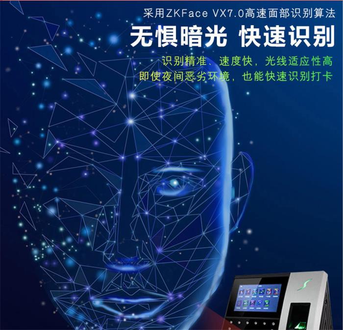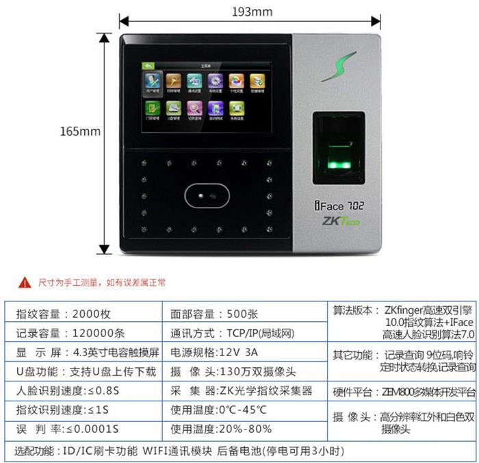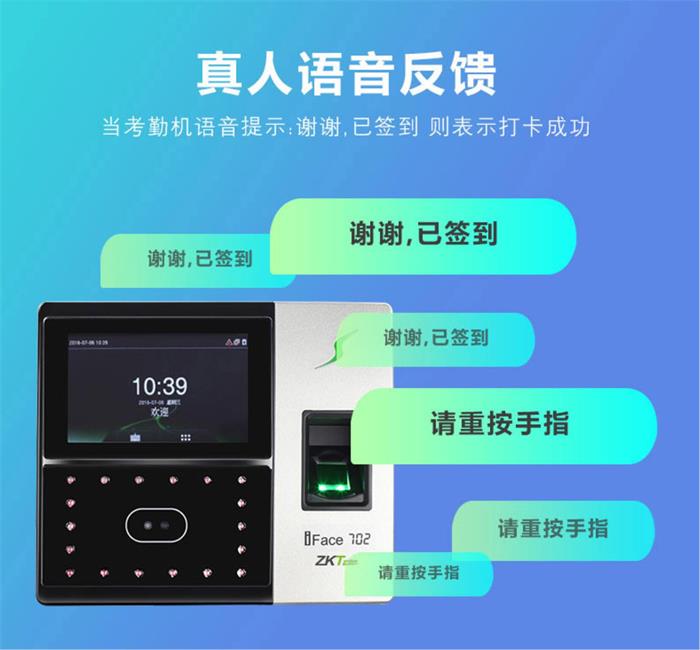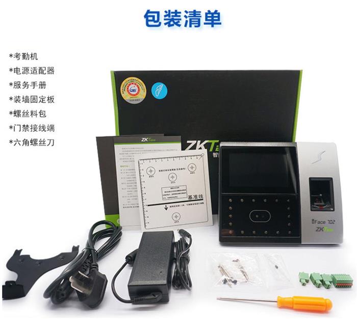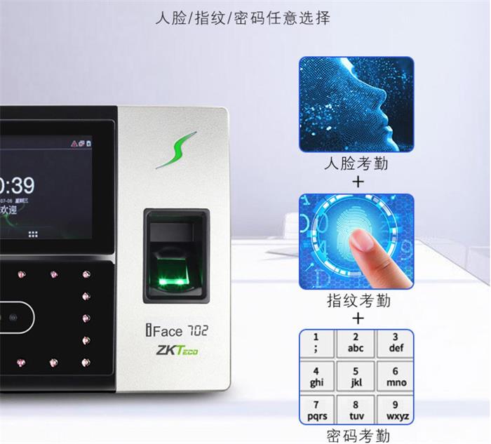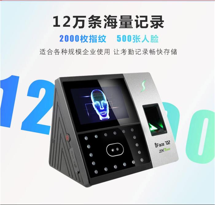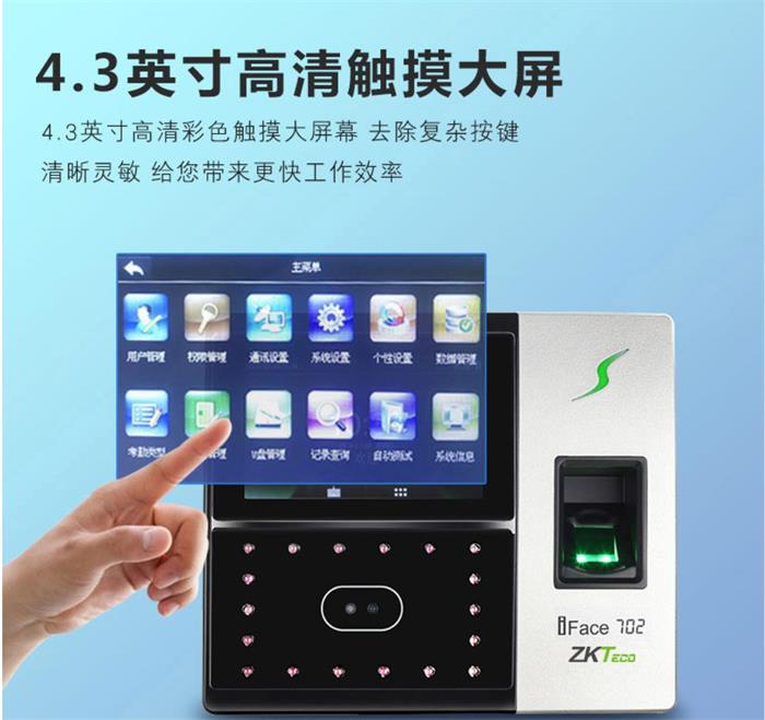 (ZKTeco) iFace702 人臉指紋考勤機(jī) 高速識別打卡機(jī) 觸屏操控門禁一體機(jī)