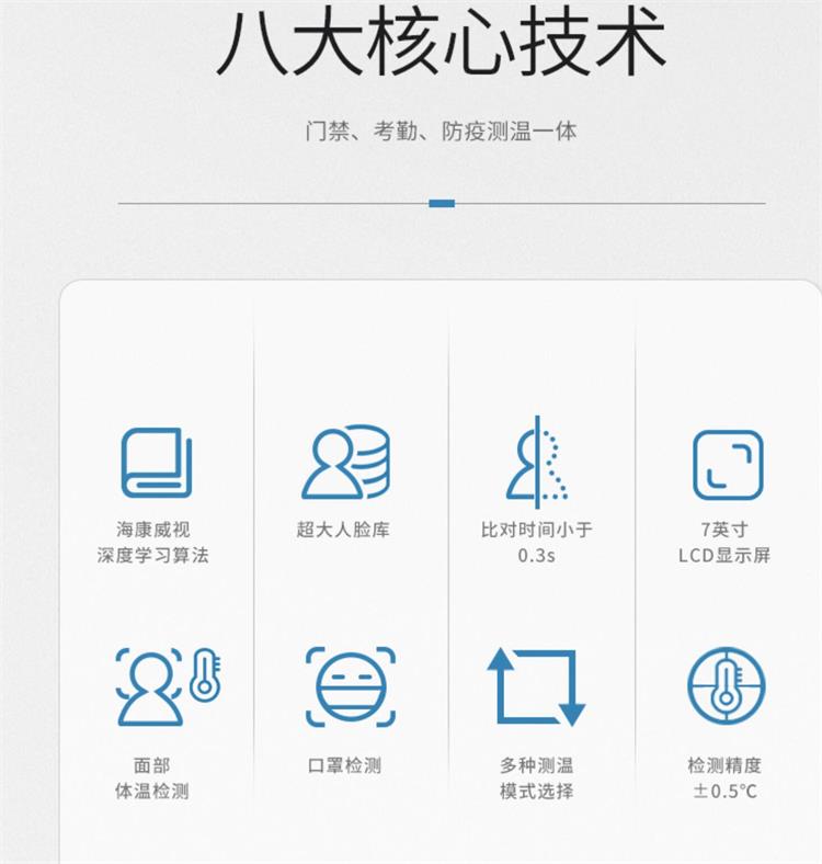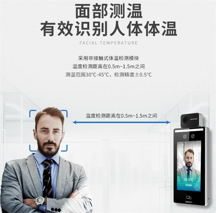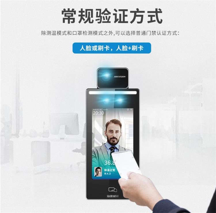 海康威視人臉識(shí)別測(cè)溫一體機(jī) 人臉門禁考勤機(jī) 面部測(cè)溫 檢測(cè)體溫 200萬高清攝像頭 K1T6Q-F70-3XF/TB