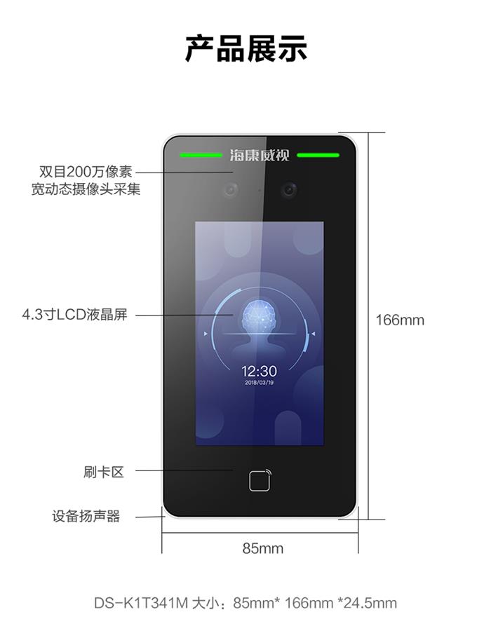 ?低暱记跈C(jī) 多功能智能門禁考勤一體機(jī) 支持人臉/刷卡/密碼認(rèn)證識(shí)別速度快超時(shí)報(bào)警 DS-K1T341M