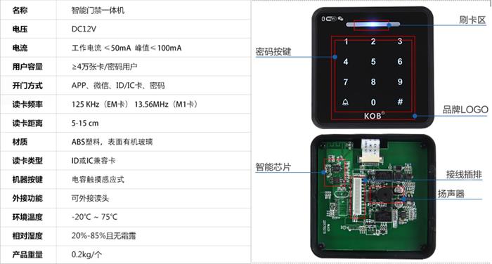 KOB門禁一體機(jī) 手機(jī)APP微信開門 WIFI藍(lán)牙通訊IDIC卡密碼門禁機(jī) 智能門禁系統(tǒng) WIFI微信版IC刷卡