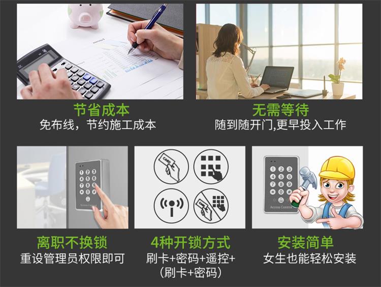 KOB無(wú)線門(mén)禁系統(tǒng)免布線刷卡鎖門(mén)禁一體機(jī)磁力鎖玻璃門(mén)密碼鎖套裝 三件套