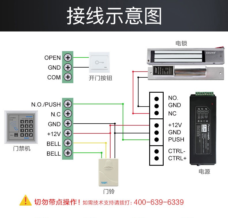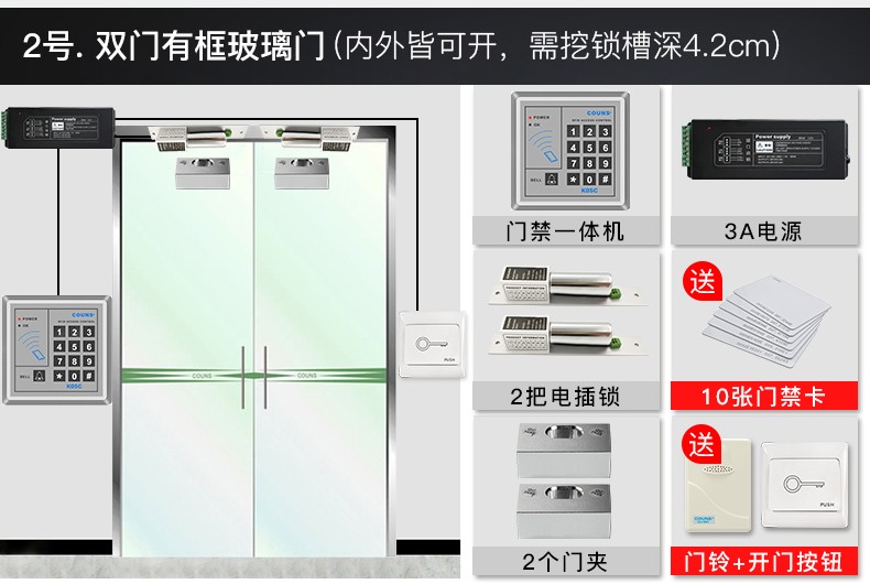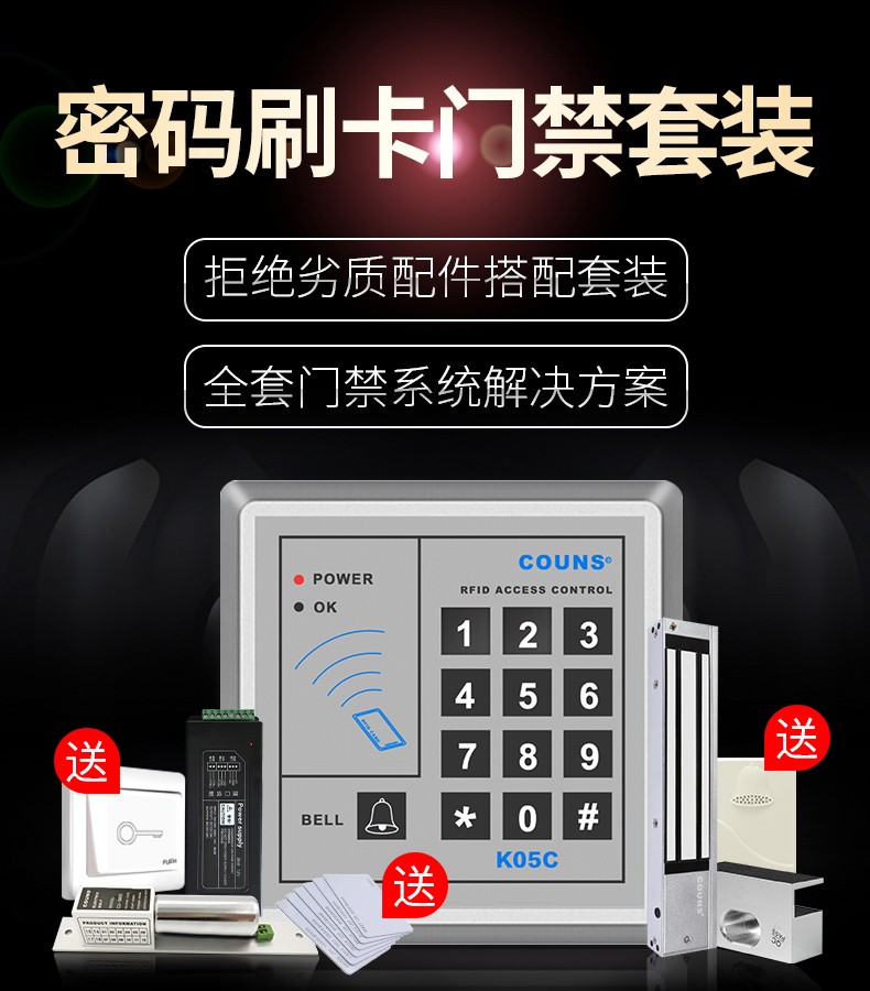 高優(yōu)(COUNS)門禁系統(tǒng)套裝 門禁開關(guān)控制器 門禁鎖電插鎖 磁力鎖 12v電源 K05C