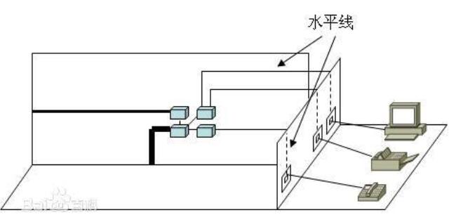 指從樓層配線間至工作區(qū)用戶信息插座,由水平電纜、中間配線設(shè)備等組成。采用星型拓?fù)浣Y(jié)構(gòu)。每個(gè)信息點(diǎn)均需連接到管理子系統(tǒng)。從管理間子系統(tǒng)的配線架的背部端口至工作區(qū)的信息插座的的距離不應(yīng)于90m。工作區(qū)的終端跳線、連接設(shè)備的設(shè)備跳線的總長(zhǎng)度不應(yīng)超過(guò)5M。水平布線系統(tǒng)施工是綜合布線中施工量、重要的工作,在建筑物施工完成后,不易變更。因此要施工嚴(yán)格,保證鏈路性能,F(xiàn)在水平線纜一般都采用Cat5e或者Cat6跟Cat6A等雙絞線纜,如有高速率應(yīng)用的場(chǎng)合,應(yīng)采用光纜。